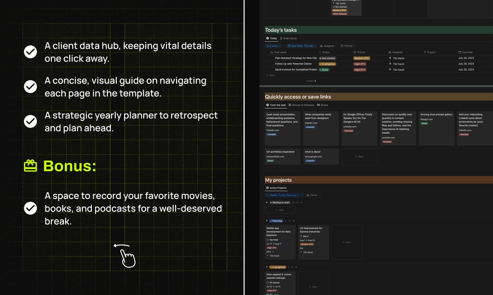- Dashboard: Your personal command center, where all tasks, projects, and resources live.
